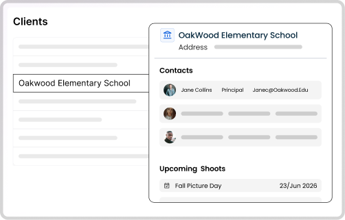 - Central Directory: Keep every client and contact in one place with roles, statuses, and custom fields.